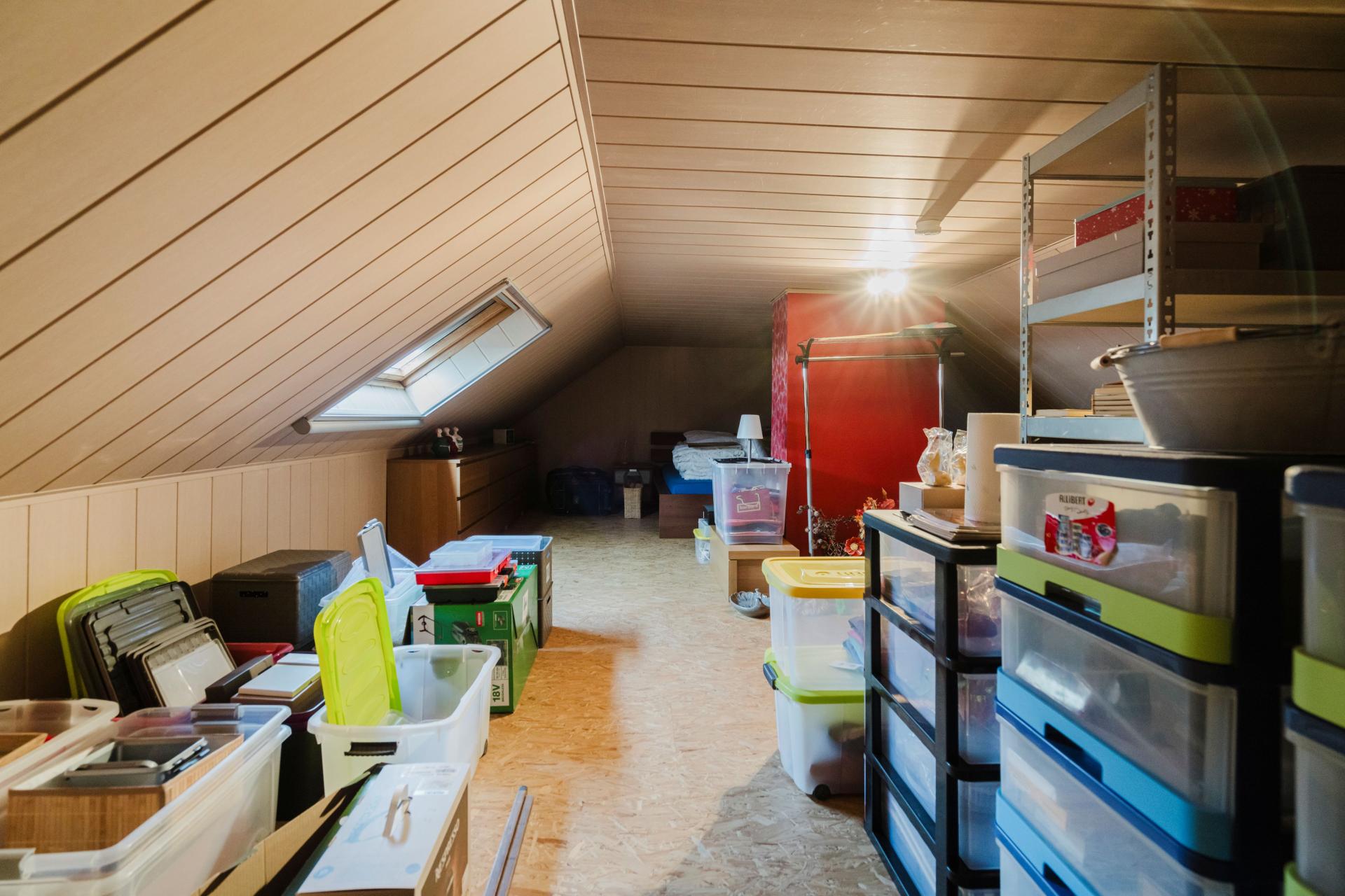 Indeling: Gelijkvloers: inkom met toilet, living met eetplaats uitgevend op het zonneterras en gezellige tuin met tuinhuis. De leefkeuken verschaft eveneens toegang tot het terras en tuin. Garage met sectionale poort. Voor de woning bevinden zich 2 parkeerplaatsen. Op de verdieping: 4 ruime slaapkamers en een badkamer met douche. Een vaste trap biedt toegang naar de zolder ( kan gebruikt worden als hobbyruimte).