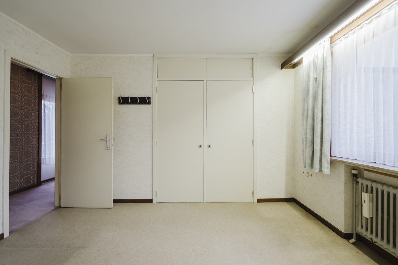 Aansluitend bevindt zich de keuken met toegang tot een praktische berging. Vanuit de keuken leidt een gang verder door de woning.