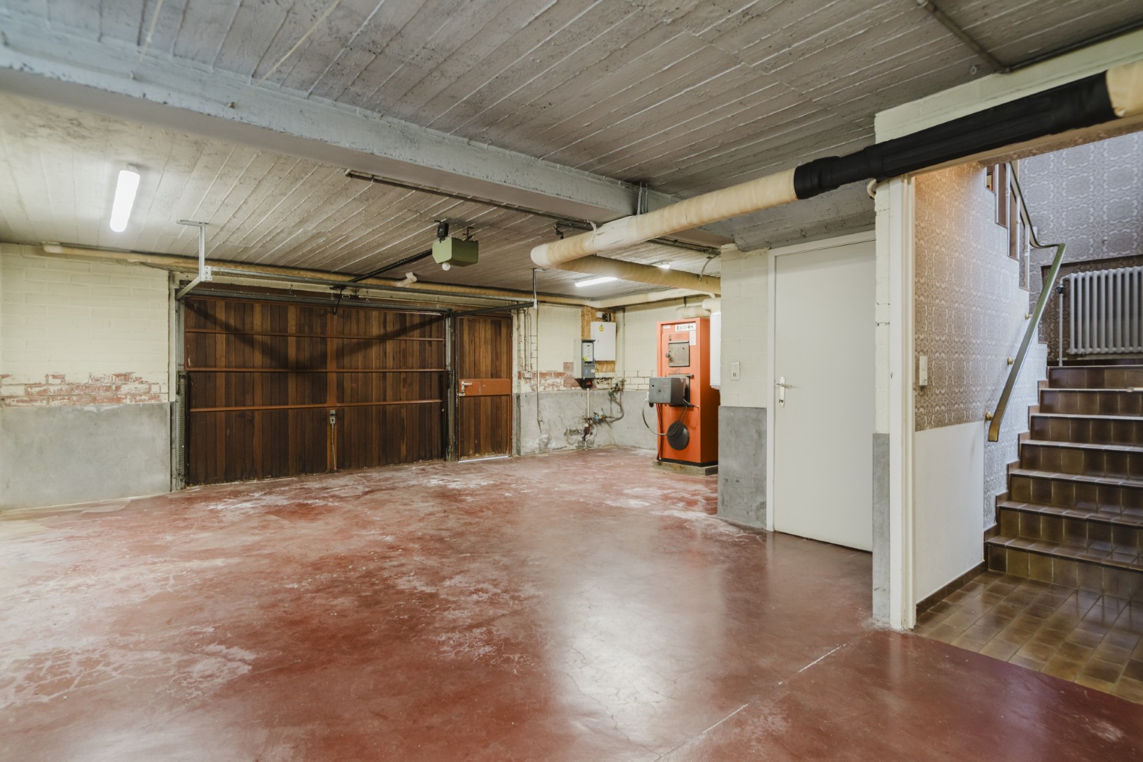 Verder beschikt de woning over een garage met plaats voor twee wagens, een ruime kelder en bijkomende ruimtes achter de garage die perfect kunnen dienen als hobbyruimte, speelkamer of extra bergruimte.